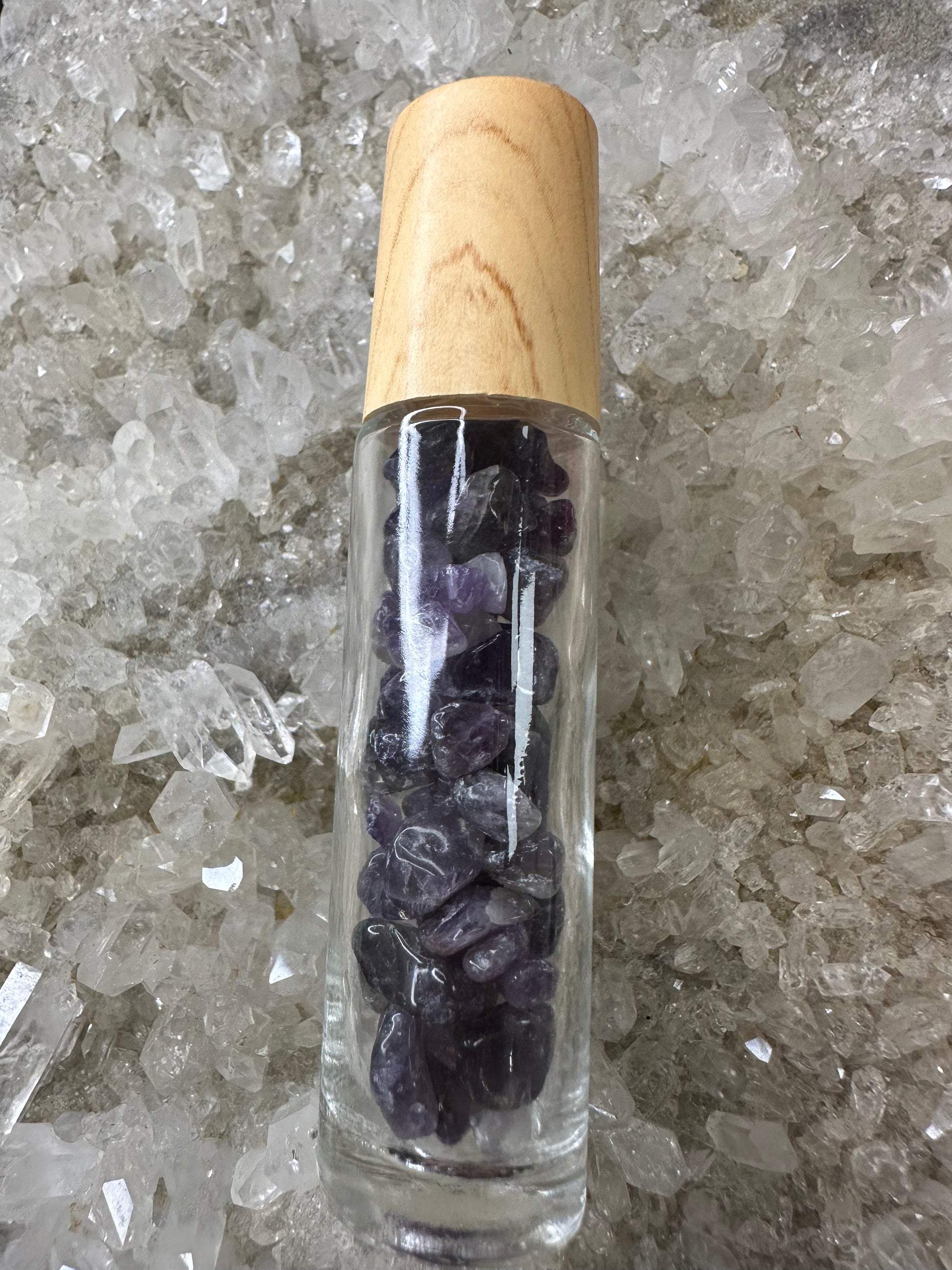 10ml Roll On Bottle For Essential Oils, Clear Glass Roller Bottles With Natural Crystal Gemstone Roller Balls Top,Bamboo Lid,Thick Glass Essential Oil Bottles-Healing Crystal Chips Inside