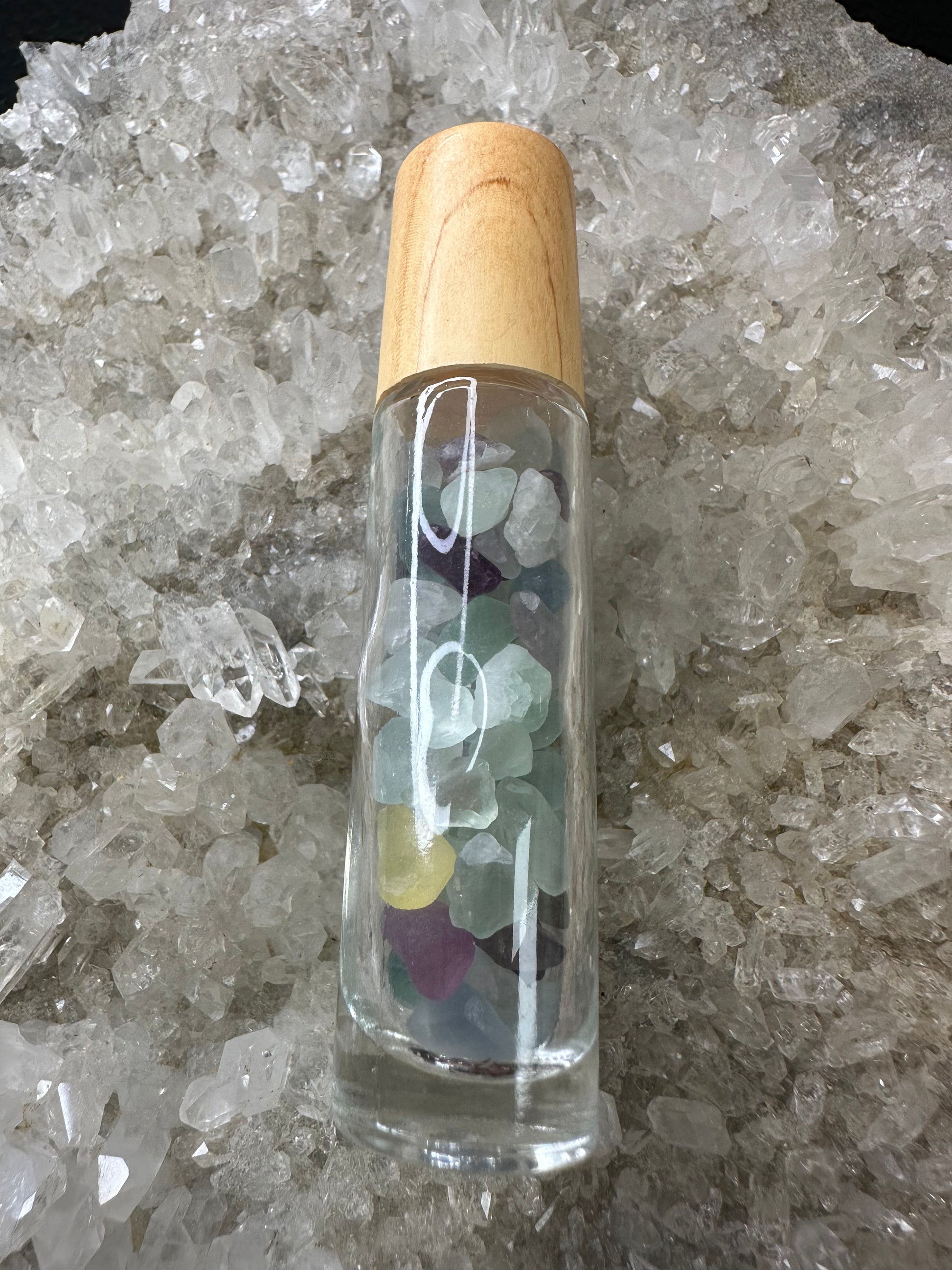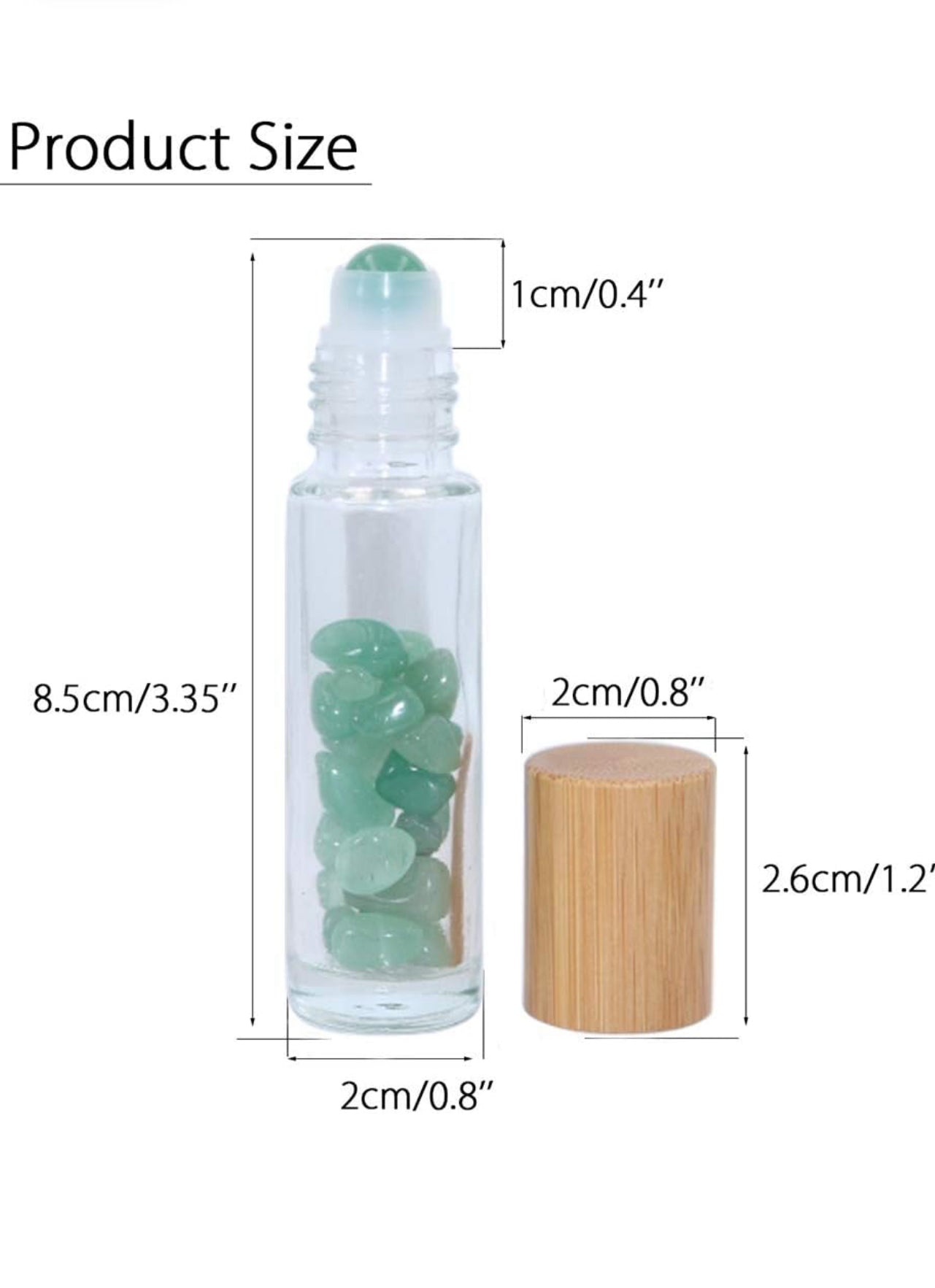 10ml Roll On Bottle For Essential Oils, Clear Glass Roller Bottles With Natural Crystal Gemstone Roller Balls Top,Bamboo Lid,Thick Glass Essential Oil Bottles-Healing Crystal Chips Inside