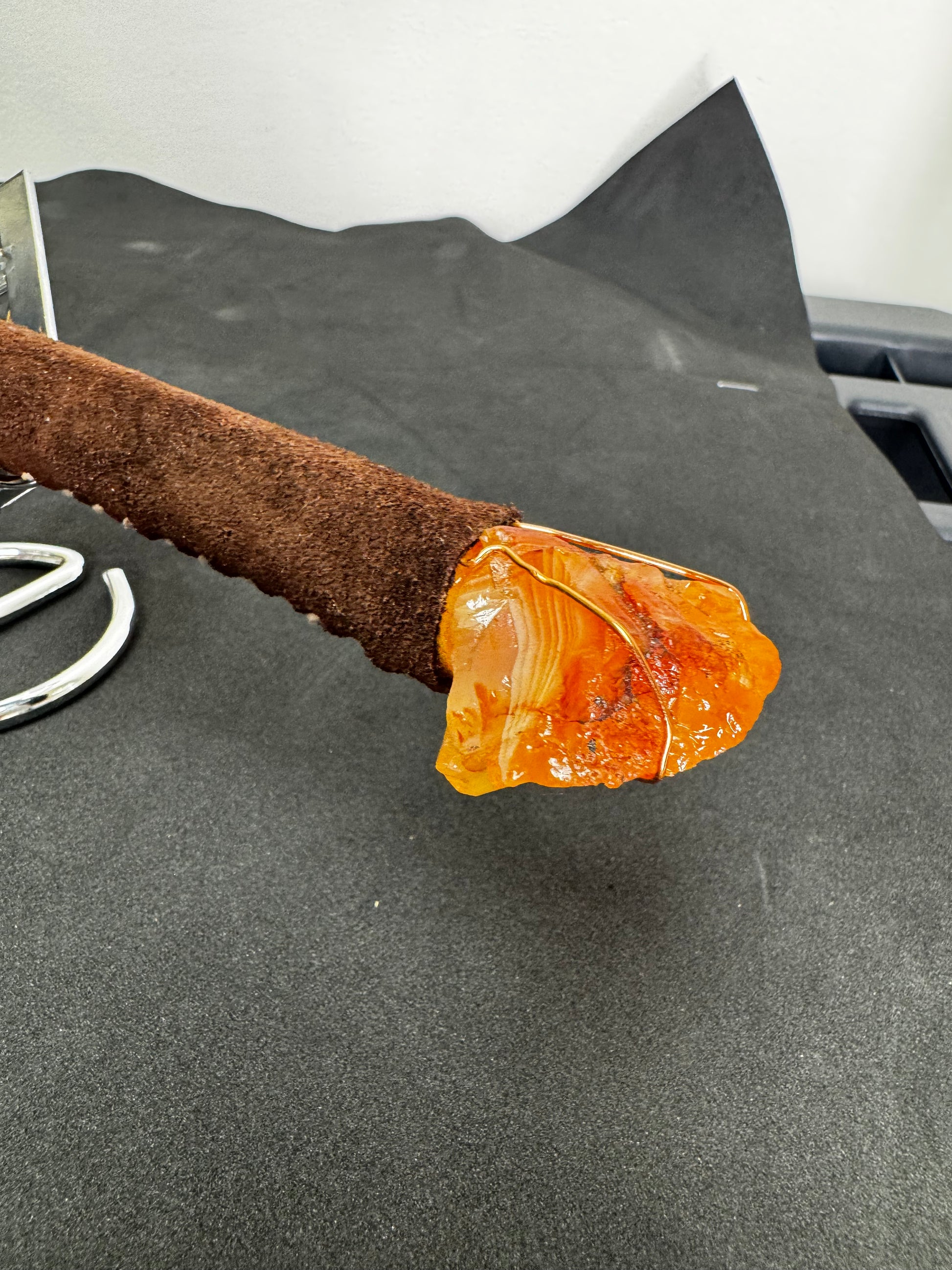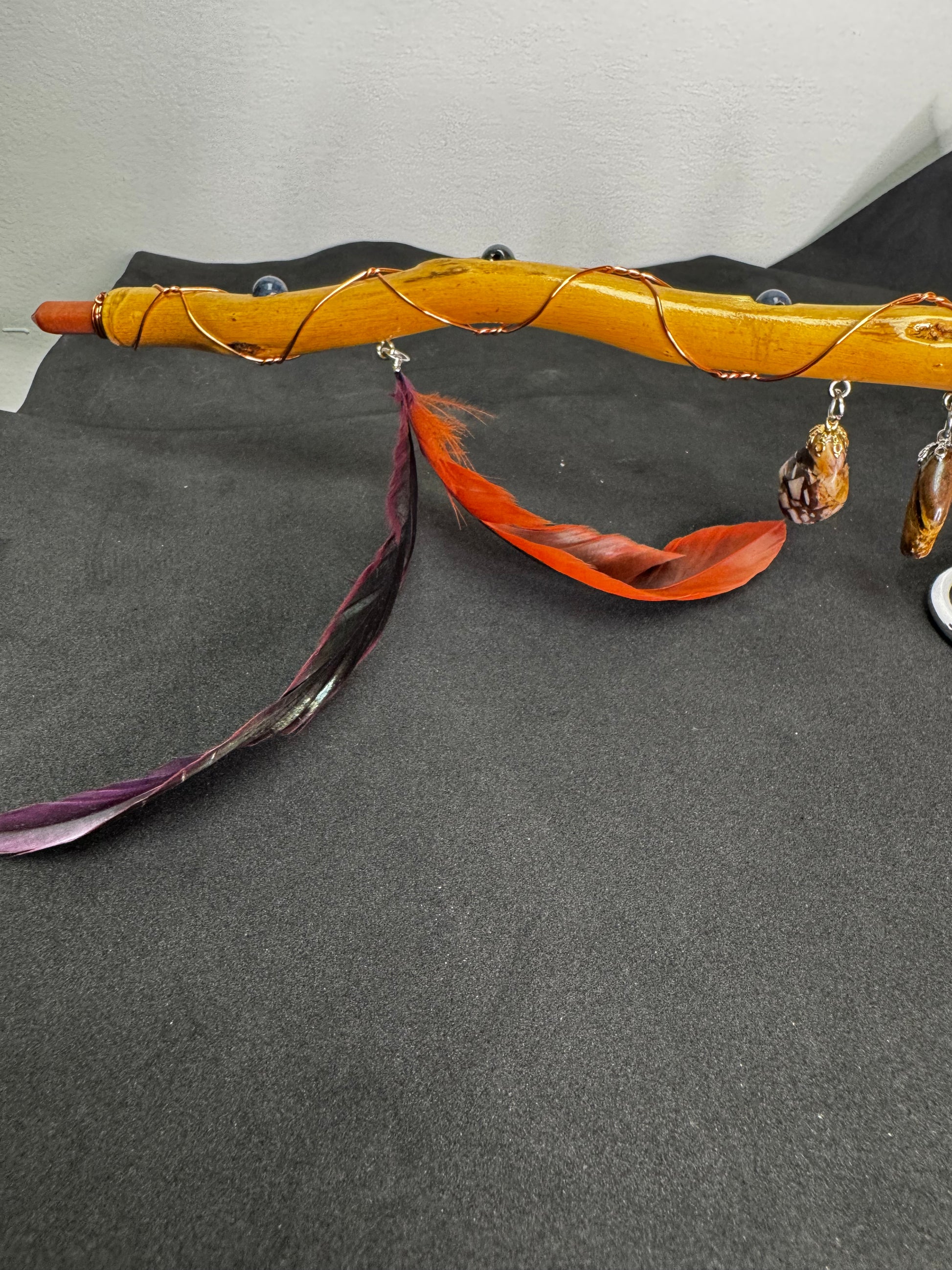 Each wand is handmade from wood carving and leather craftsmanship. Each stone is placed with intention. You will receive the exact wand posted in each listing.