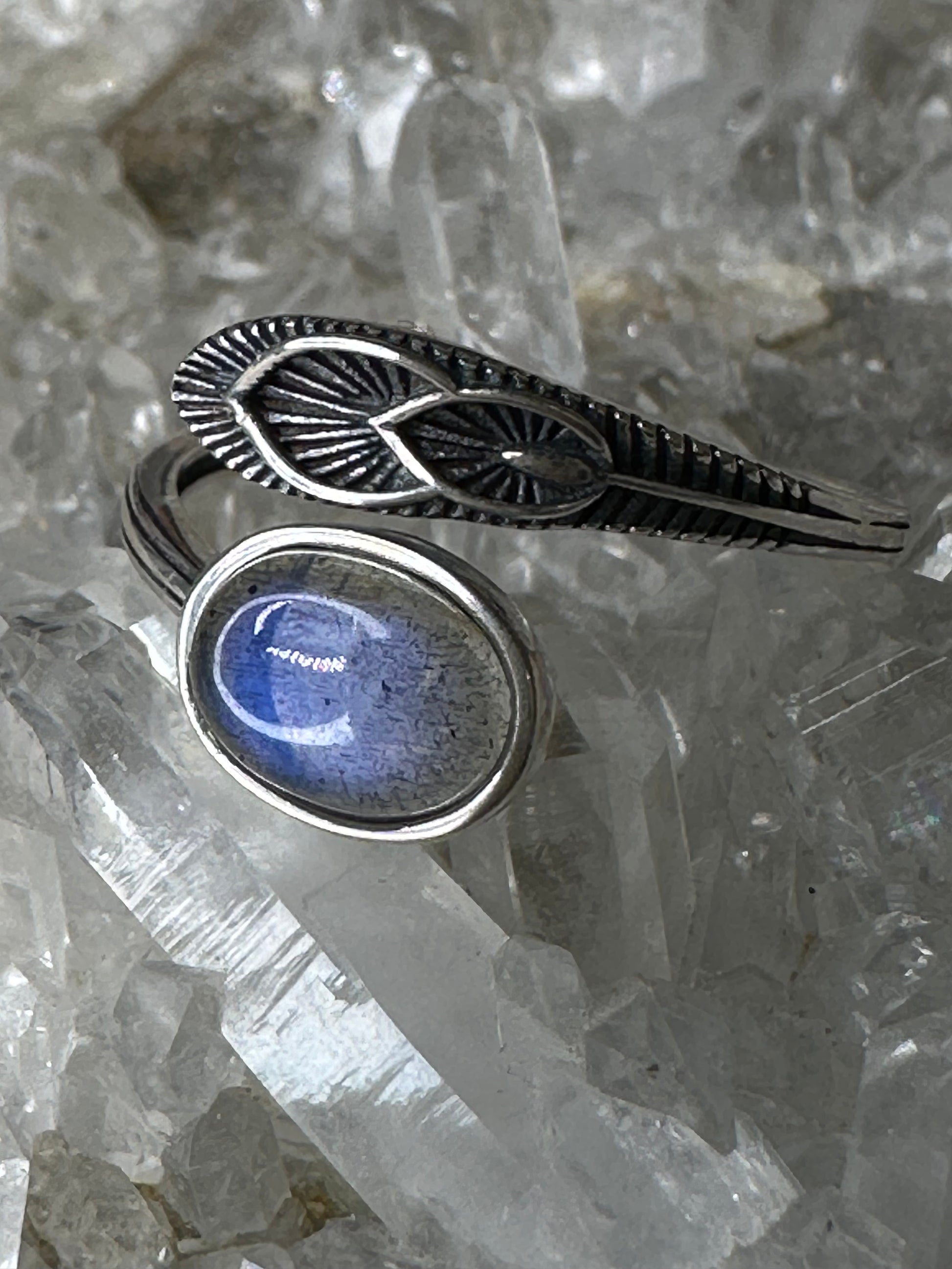 Divinely Guided crystal rings are all adjustable made from 925 sterling silver. It's the ideal precious metal for our handpicked crystals. The silver creates an attractive setting but enhances the colors and subtle hues within each crystal. Gleaming sterling silver has a neutral quality that compliments every type of crystal and gemstone we use to create jewelry. When you wear a sterling silver ring, you can choose whether to give it a quick polish or allow it to tarnish naturally for a worn antique look.Sterling silver is a high-quality material that's both durable and beautiful to wear.