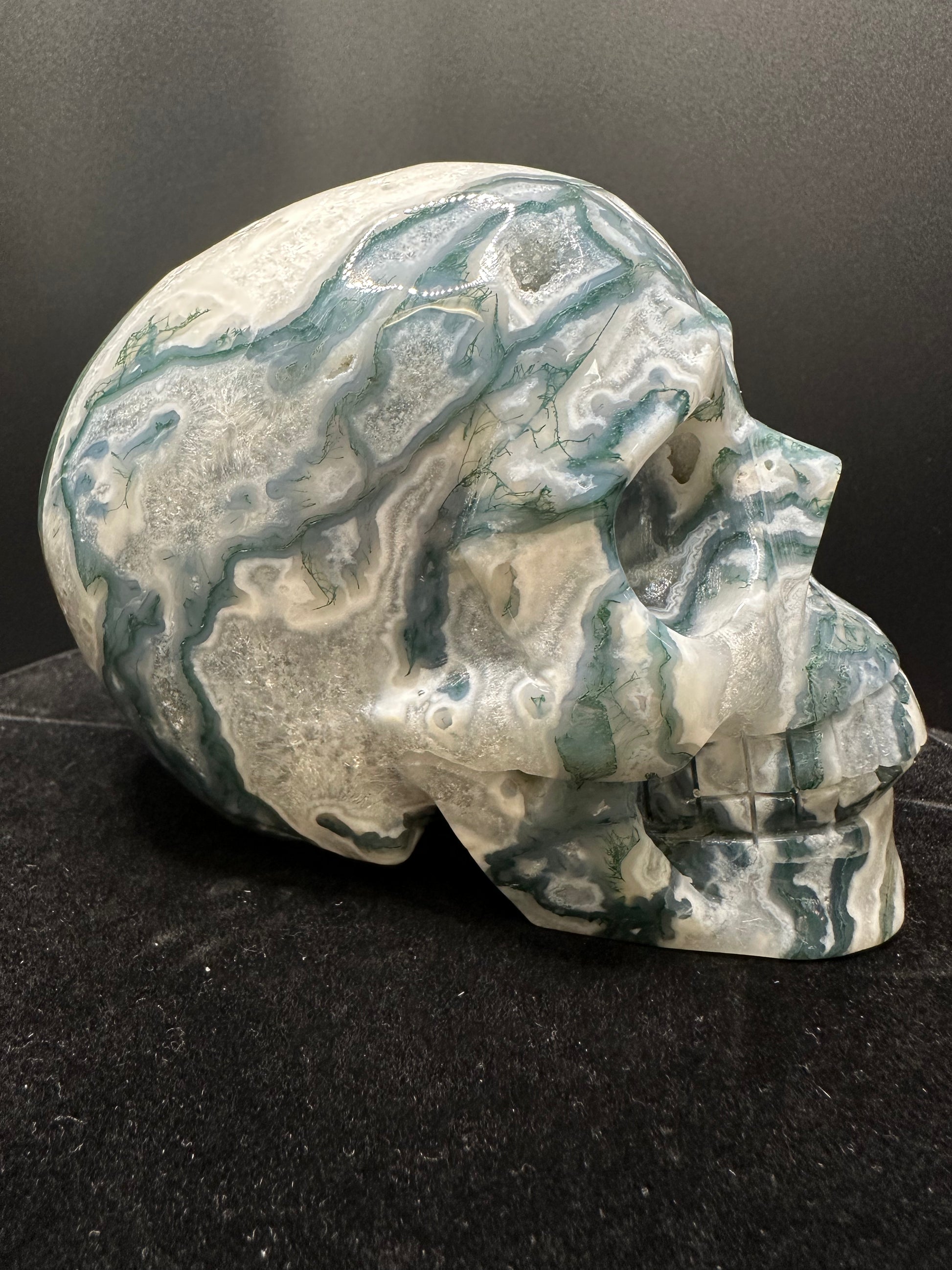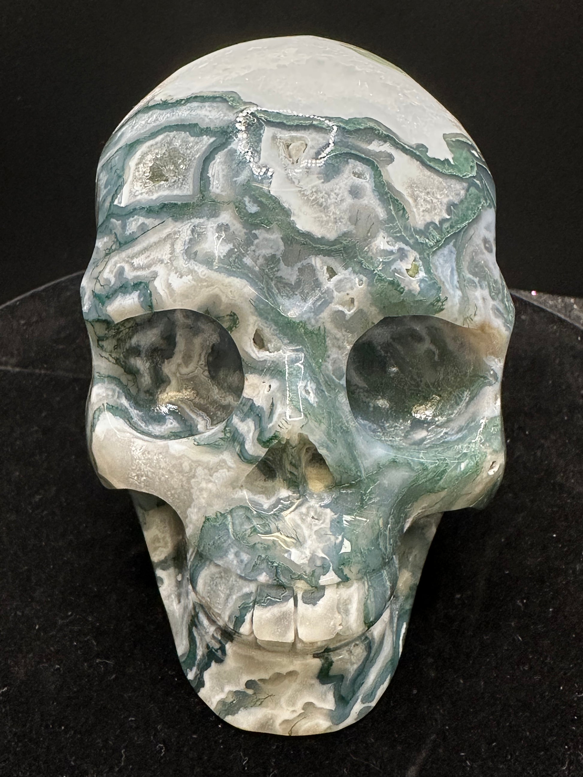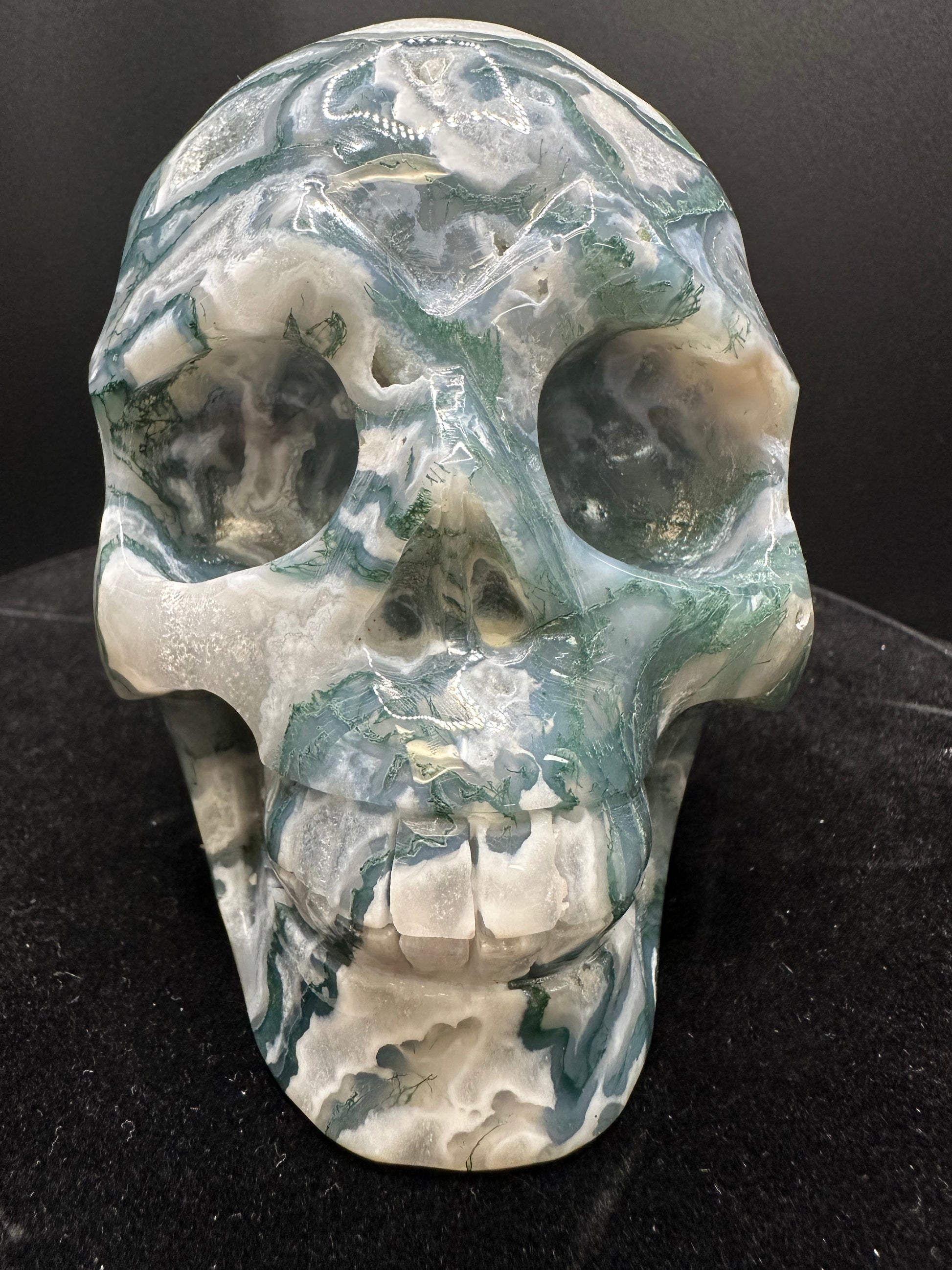 moss Agate Crystal Skull.