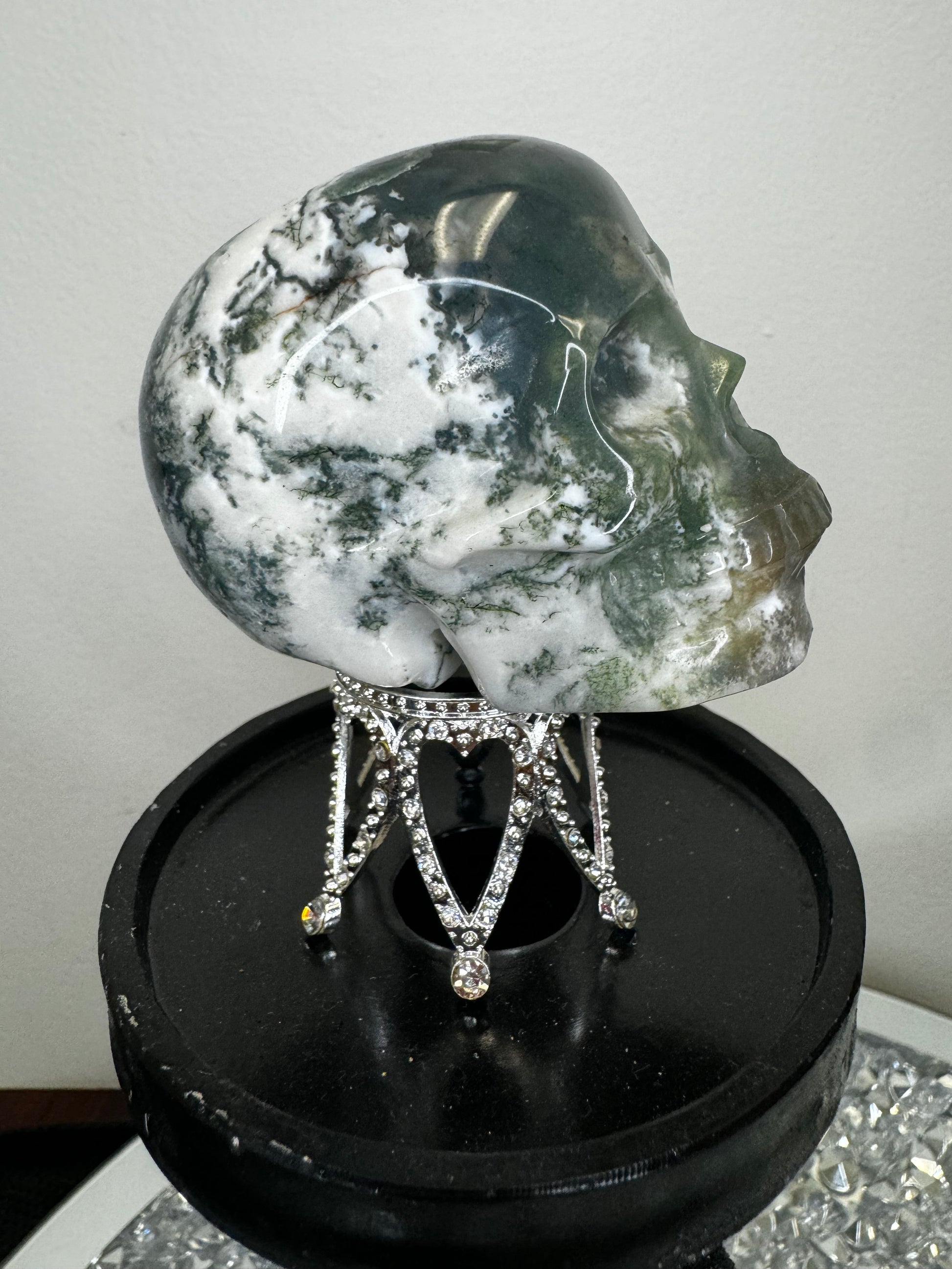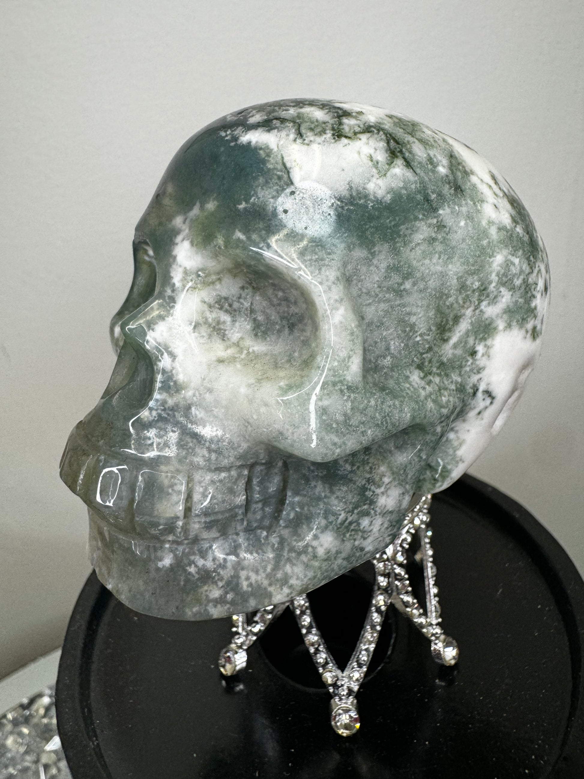 Moss agate skull